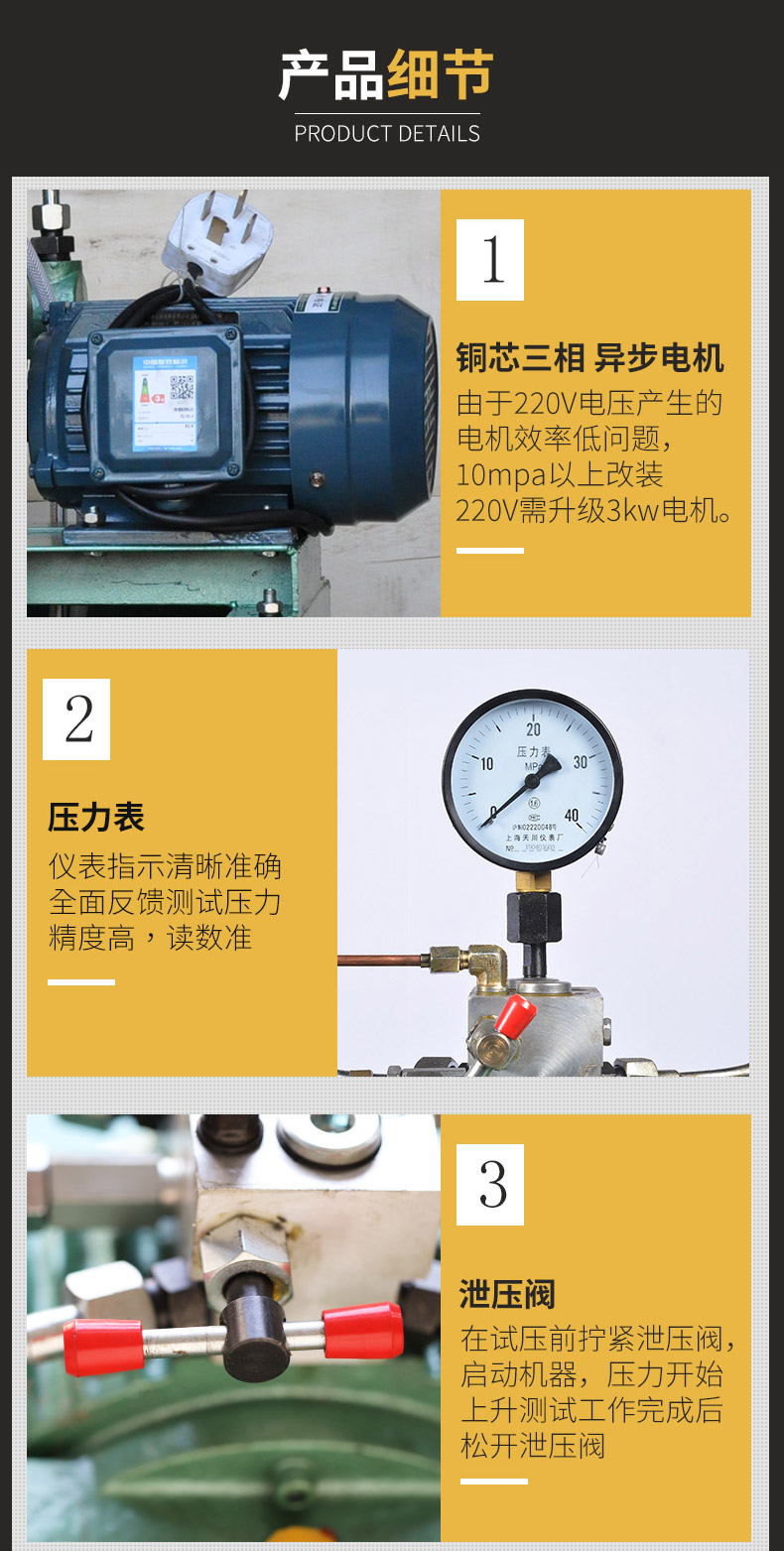 2. 若需要帶壓力自控的試壓泵請選用 4DSK壓力自控電動試壓泵(2.5-100Mpa)
